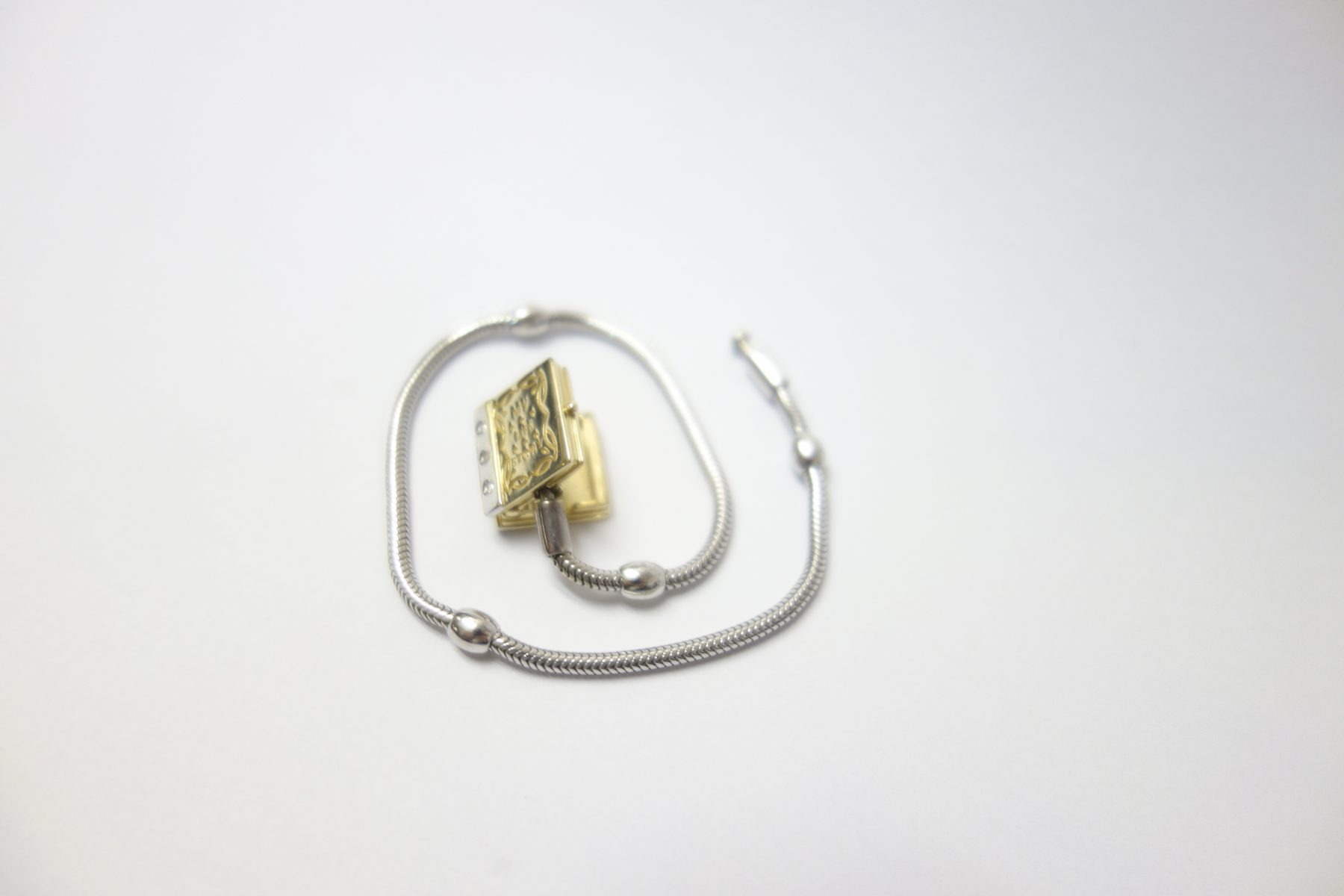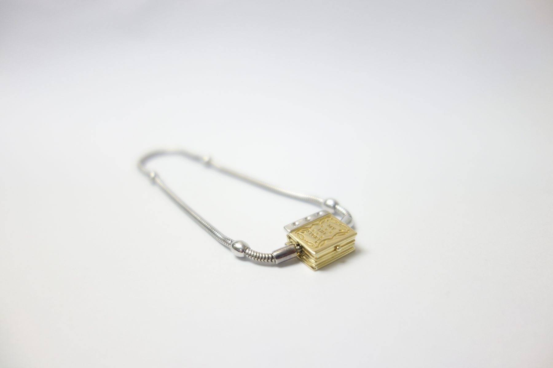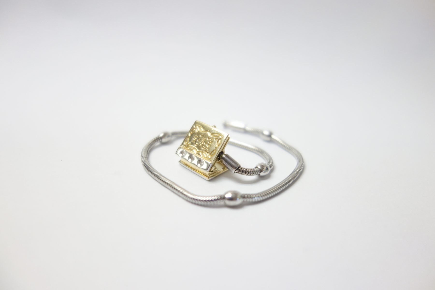 14Kt Gold, Silver And Diamonds Storyweels Charm Bracelet