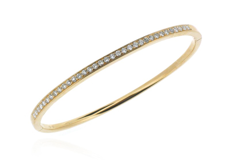 - Top half of the bangle is delicately grain set with sparkling round brilliant cut diamonds.