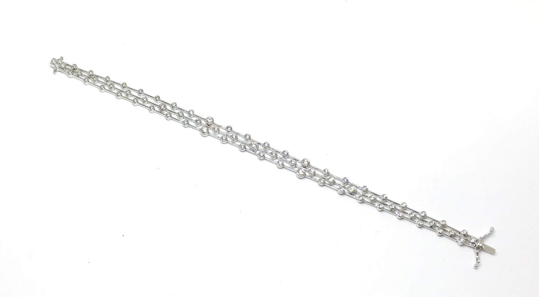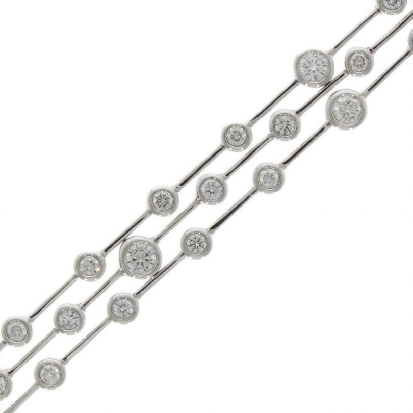 18ct White Gold Diamond 3 Row Bubble Bracelet