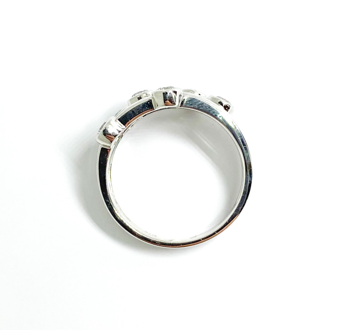 Six round brilliant cut diamonds set into a white gold bubble ring style setting.