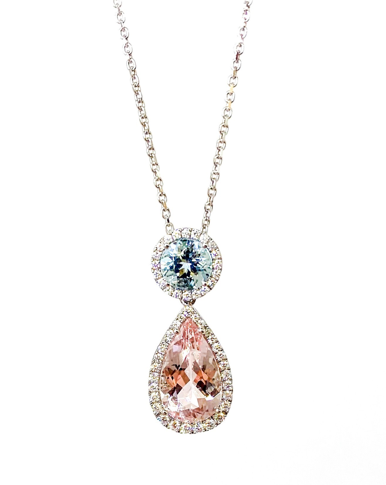 18ct White Gold Morganite Aquamarine and Diamond Pendant