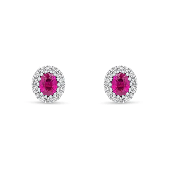 18ct White Gold Oval Ruby & Diamond Cluster Earrings