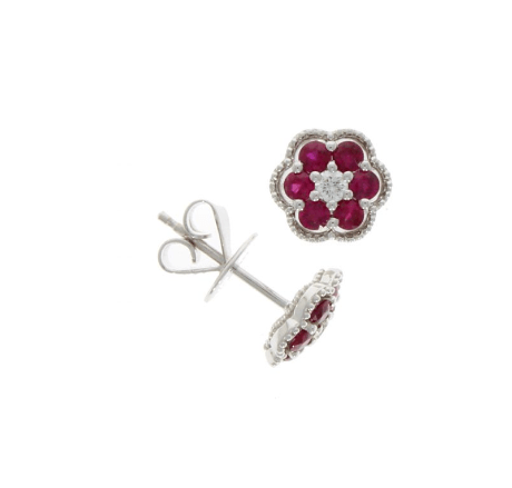 18ct White Gold Ruby & Diamond Flower Earrings