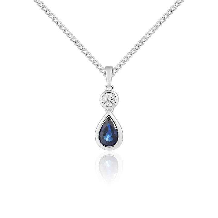 18ct White Gold Pear Shaped Sapphire & Round Diamond Two Stone Pendant