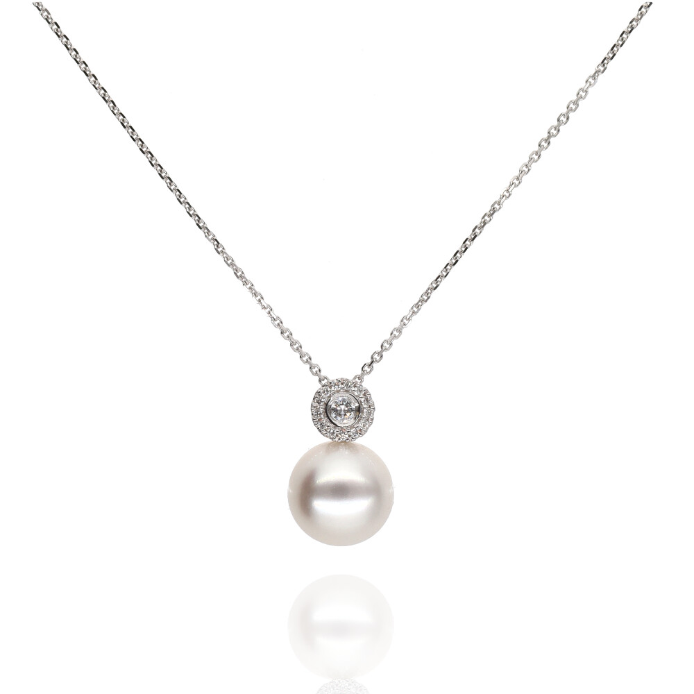 18ct White Gold Southsea Pearl & Diamond Necklace