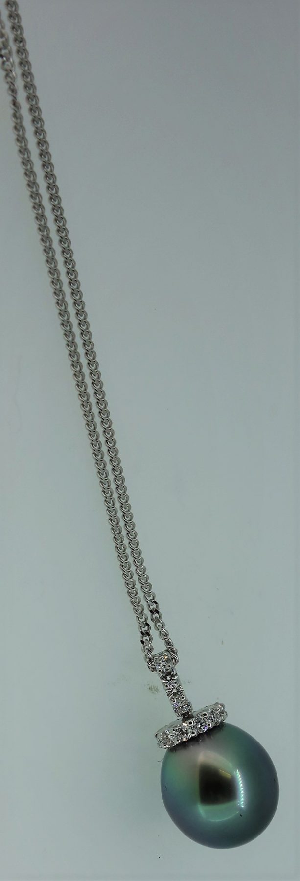 18ct White Gold Tahitian Pearl & Diamond Pendant 12mm