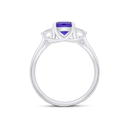 18ct White Gold Tanzanite & Diamond Trilogy Ring