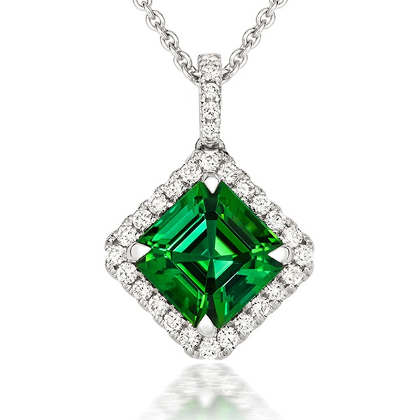 18ct White Gold Tourmaline and Diamond Pendant