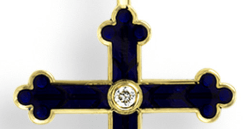 18ct Yellow Gold Diamond Purple Cross Necklace