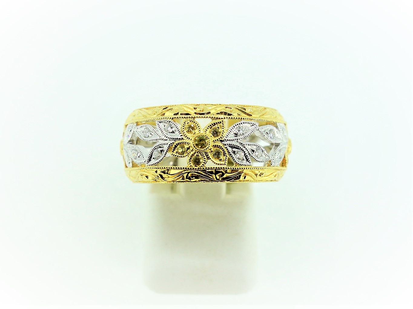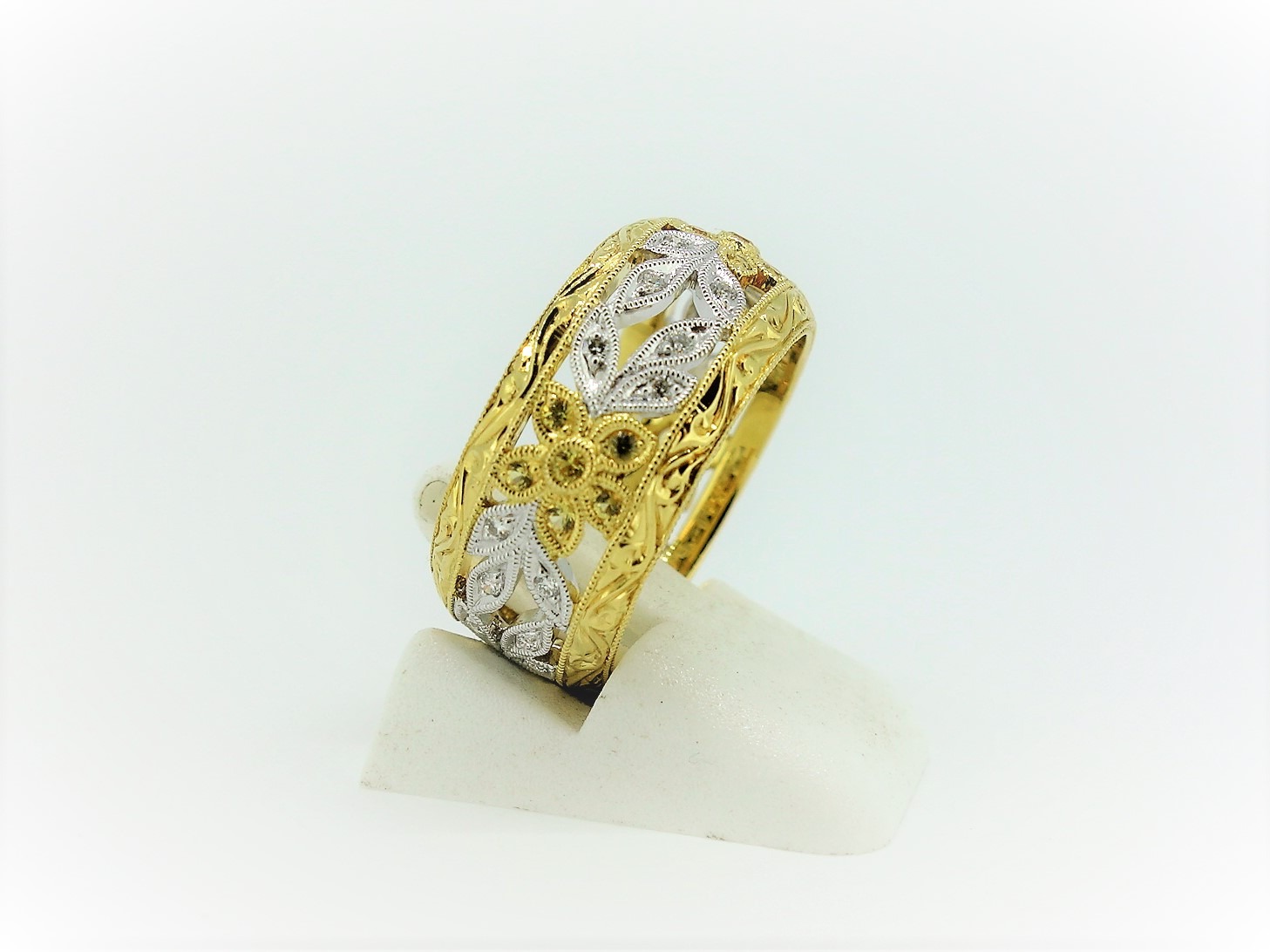 18ct Yellow Gold Diamond & Yellow Sapphire Filigree Ring