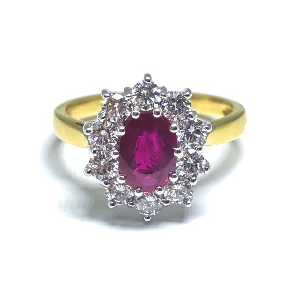 18ct Yellow Gold Oval Ruby & Diamond Cluster Ring