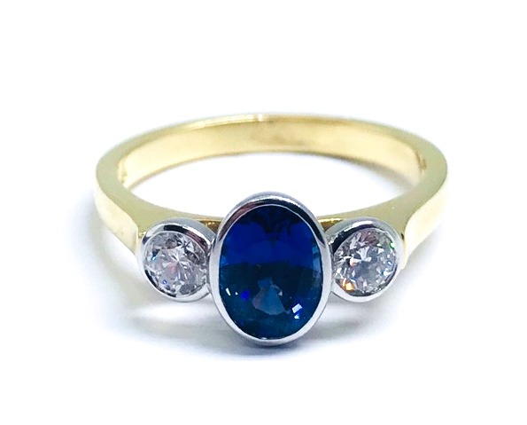 18ct Yellow Gold Sapphire & Diamond Three Stone Ring