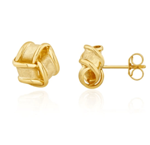 9ct Yellow Gold Frosted & polished Ribbon Knot Stud Earrings