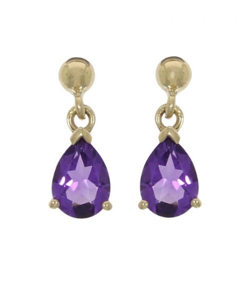 9ct Yellow Gold Pear Amethyst Drop Earrings