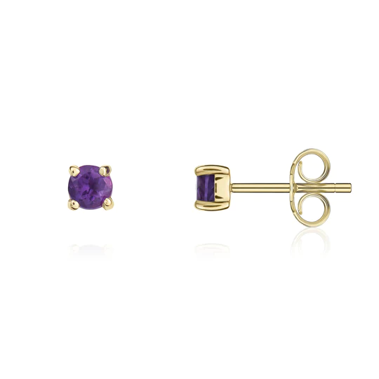 9ct Yellow Gold Round Amethyst Claw Stud Earrings