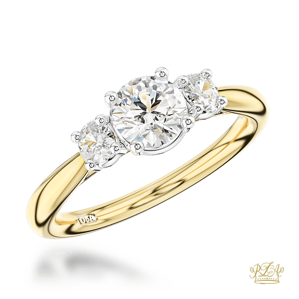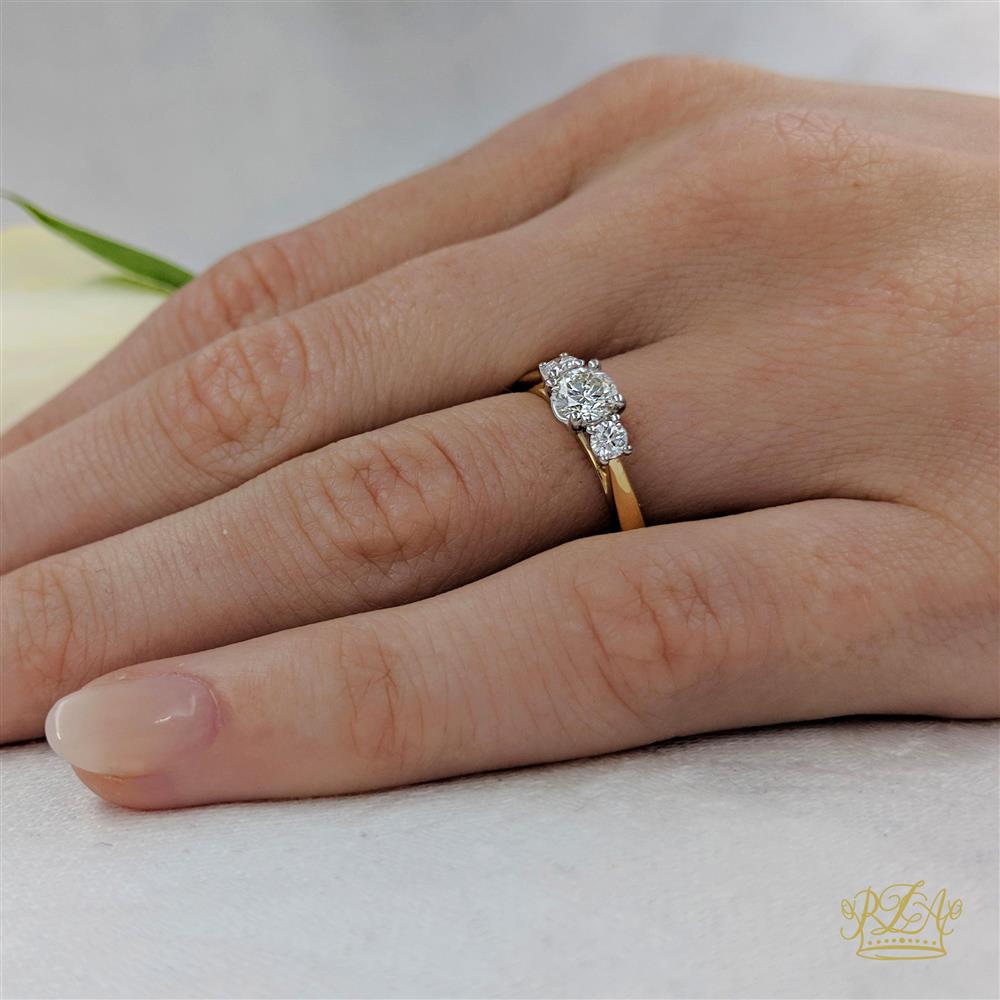 Round Brilliant Cut 18ct Yellow Gold Shank and Platinum Head Three Stone Plain Band