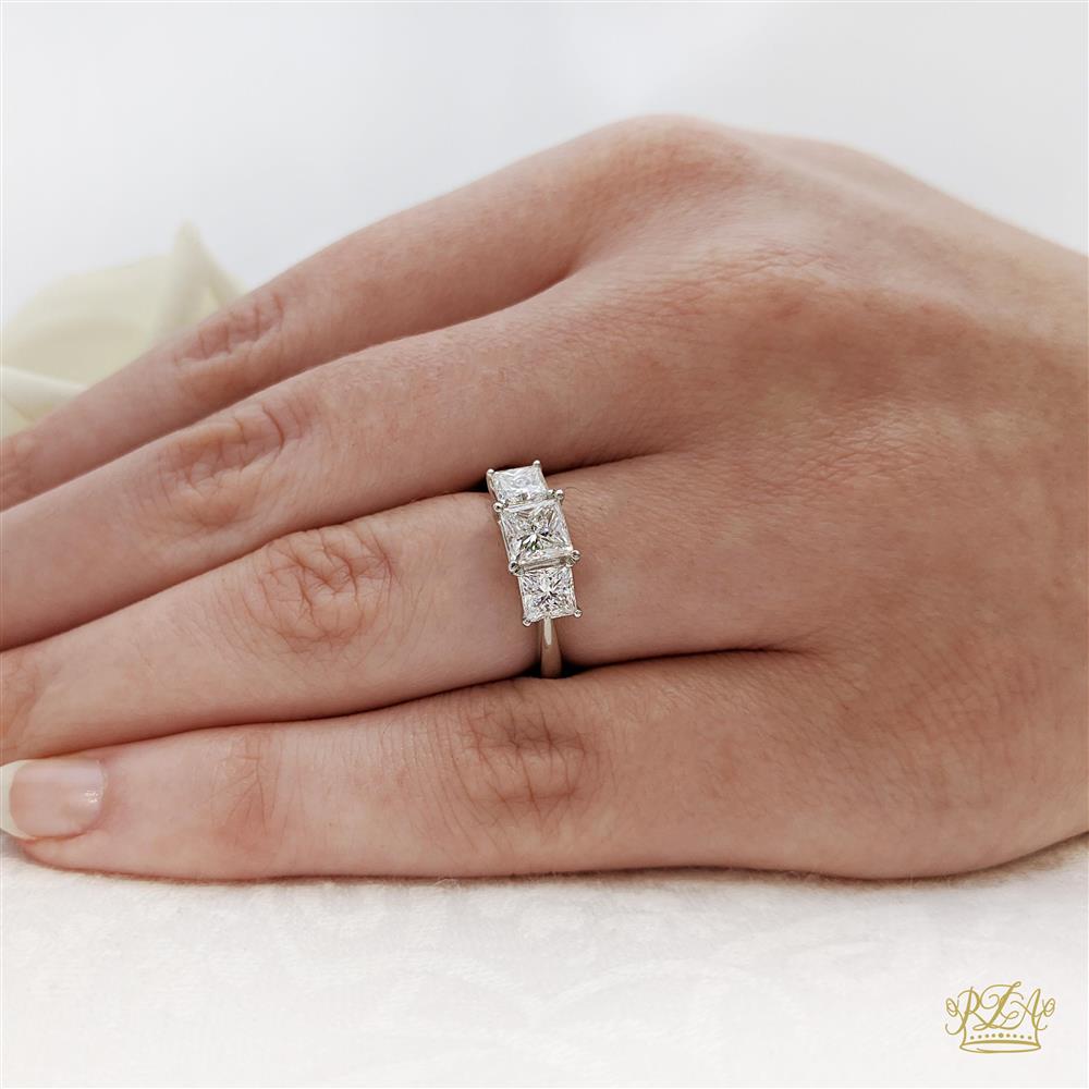 Princess Cut Platinum Three Stone Plain Band