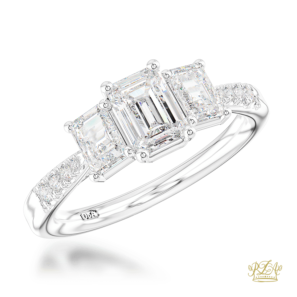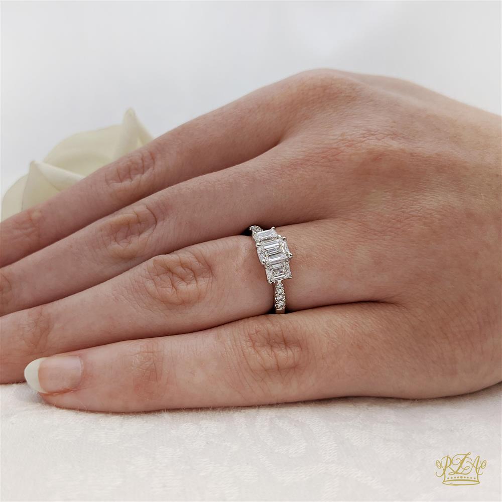 A modern take on a diamond solitaire with emerald cut accents. A perfect balance.