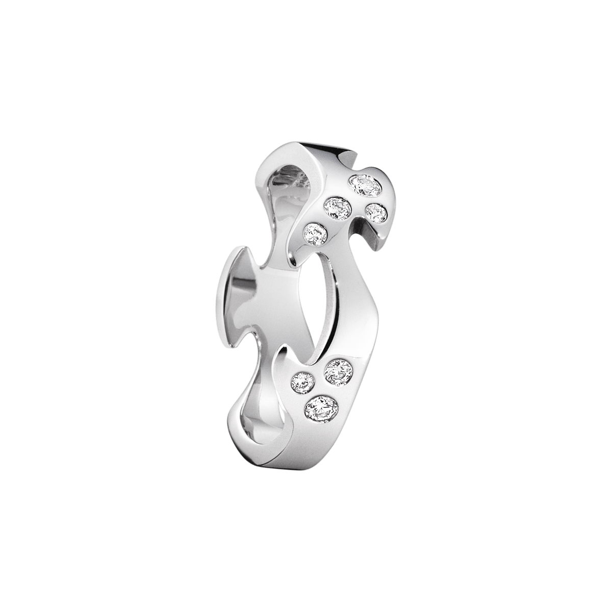 Georg Jensen’s iconic Fusion collection allows you to combine different rings to create your own narrative. Tell the story of your love or reflect your personality through endless possibilities and combinations. This white gold and diamond centre ring is a beautiful abstract shape in itself but interlocks seamlessly with other rings in the collection.