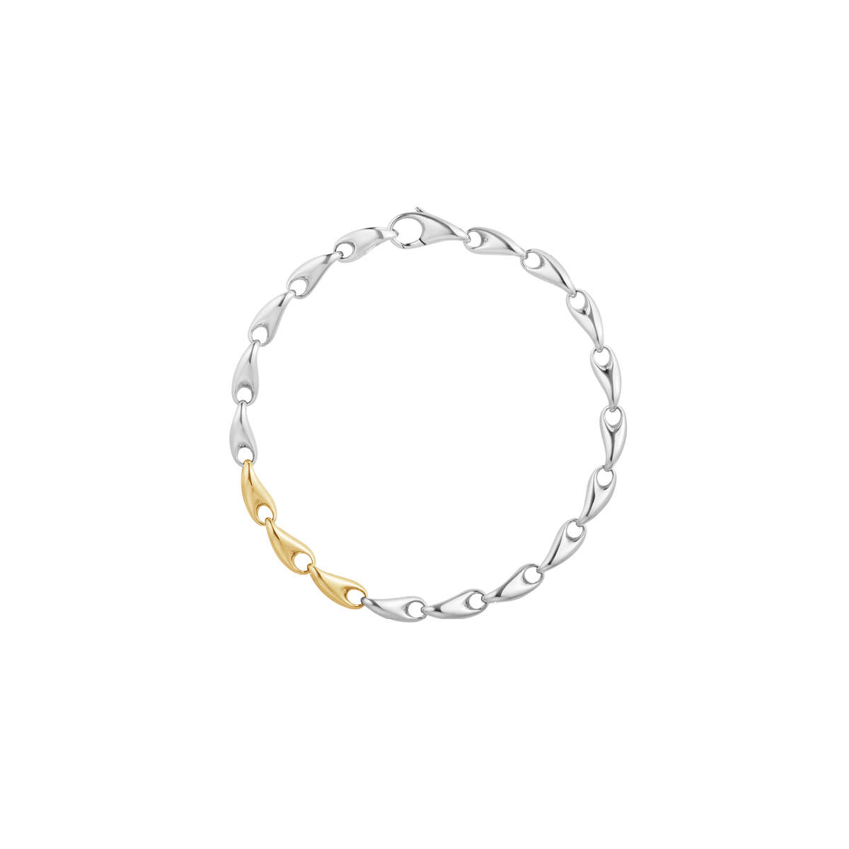 Three pieces of 18ct gold cleverly accent this bracelet, integrated into a series of links in sterling silver. Designed by Jacqueline Rabun, the bracelet combines a bold and contemporary look with Georg Jensen’s sculptural design language. Fasten it by using its integrated clasp.