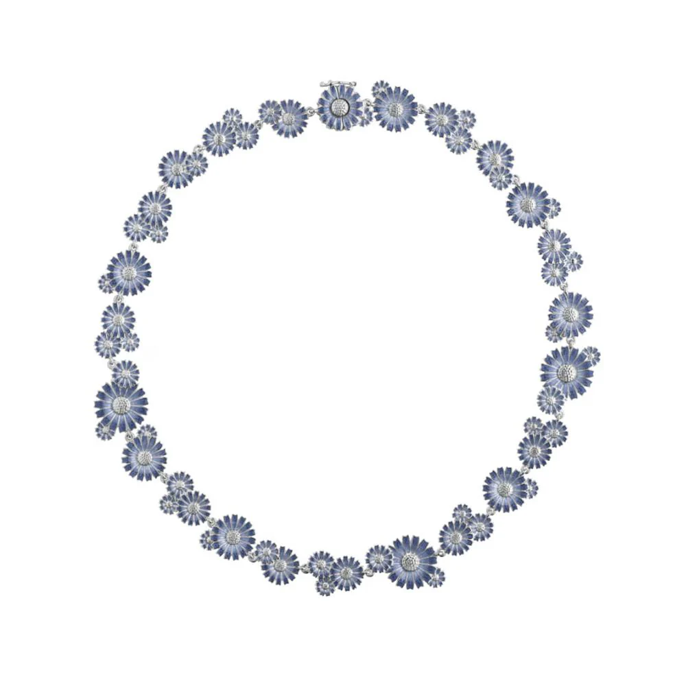 Georg Jensen Sterling Silver Daisy Blue Enamel Necklace
