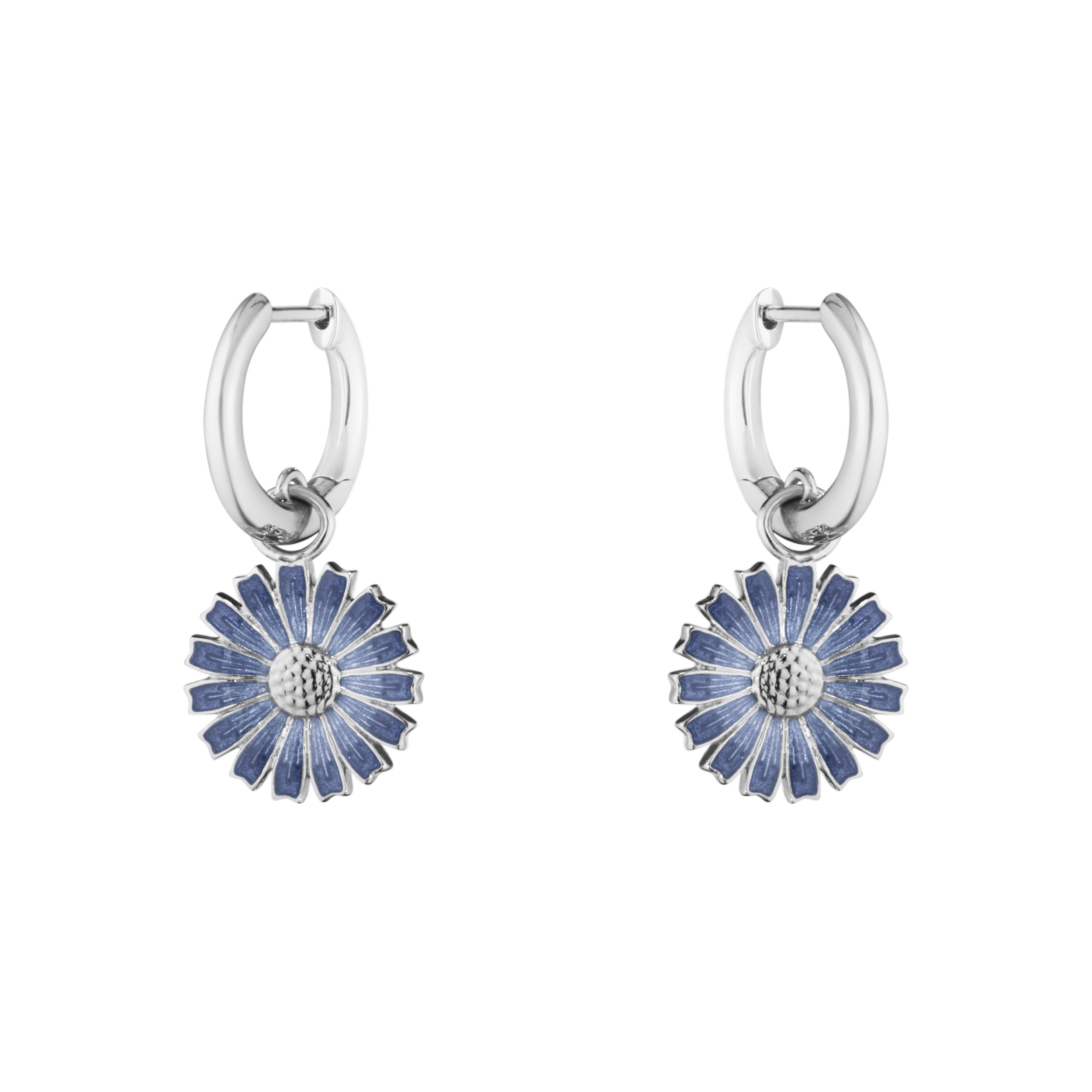 Georg Jensen Sterling Silver DAISY Earrings Rhodium plated sterling silver, Blue enamel