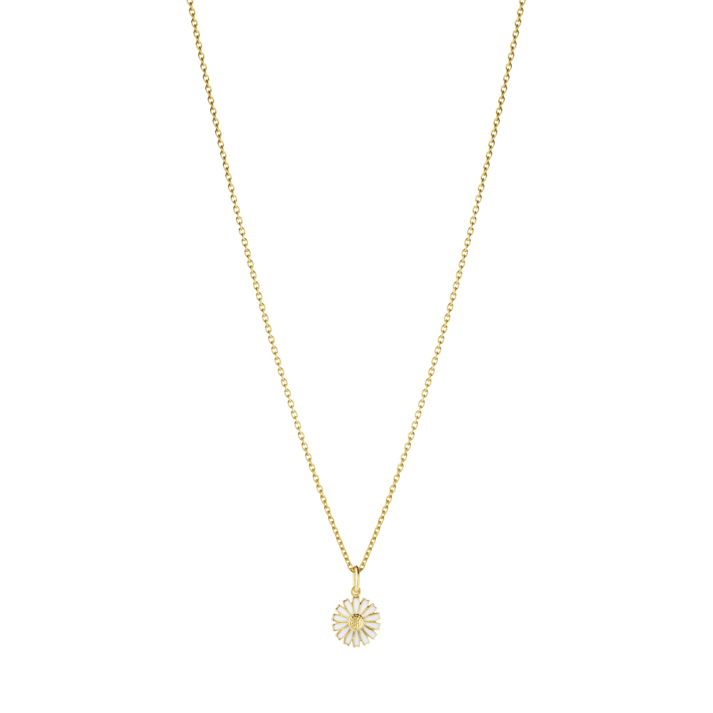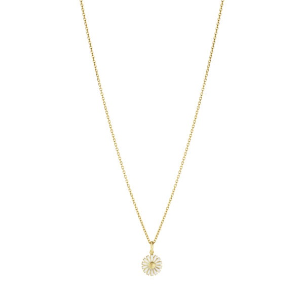 A blooming white daisy hangs on a 18kt gold plated sterling silver chain giving life to this elegant pendant. Hand-plated in white enamel, the piece lends itself to any occasion and ensemble, be it formal or casual. A part of Georg Jensen’s celebrated Daisy collection, the pendant features the iconic floral motif inspired by a 1940s brooch donated to HM Queen Margrethe II of Denmark.