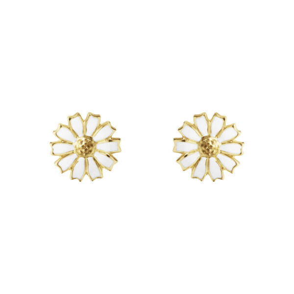 These 18kt gold plated stud earrings are adorned with a delicate enamel daisy, adding a floral touch that instantly transforms any ensemble. Their playful design is imbued with cheerful charm, making them a thoughtful gift or versatile addition to any jewellery collection.
