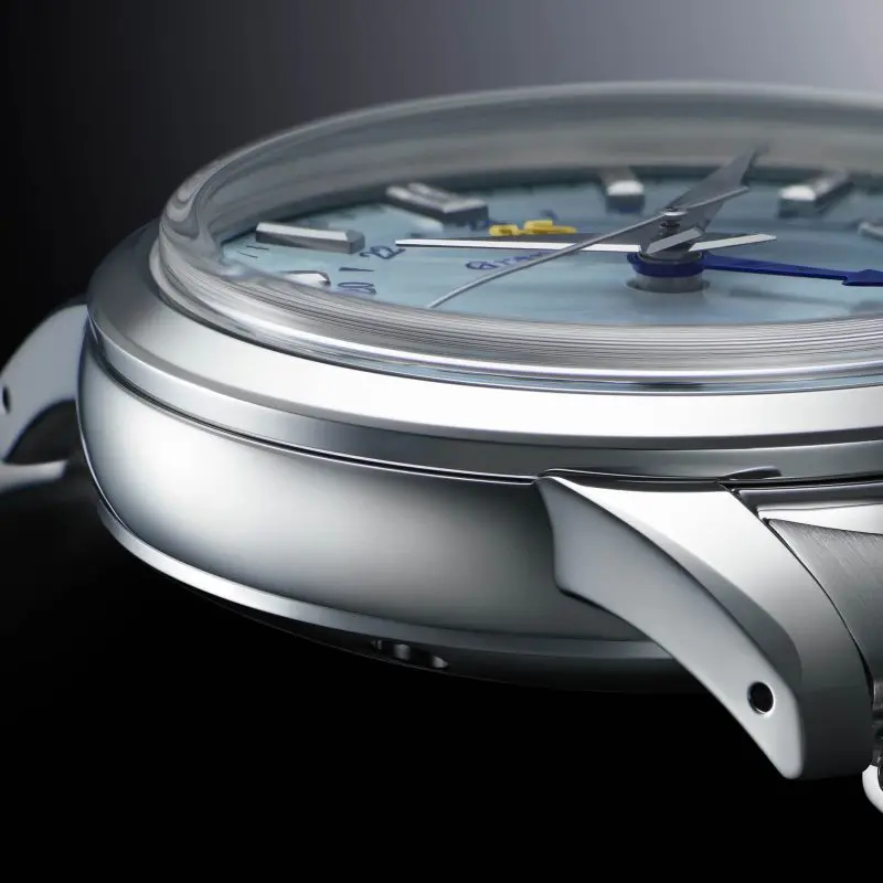 The signature textured dial is inspired by the view from Mount Iwate near the Shizukuishi Watch Studio where Grand Seiko mechanical timepieces are made. The blue dial colour represents mid-heaven or ‘中天= Chūten’ – the sky you can see when looking even further upwards from the top of the mountain.