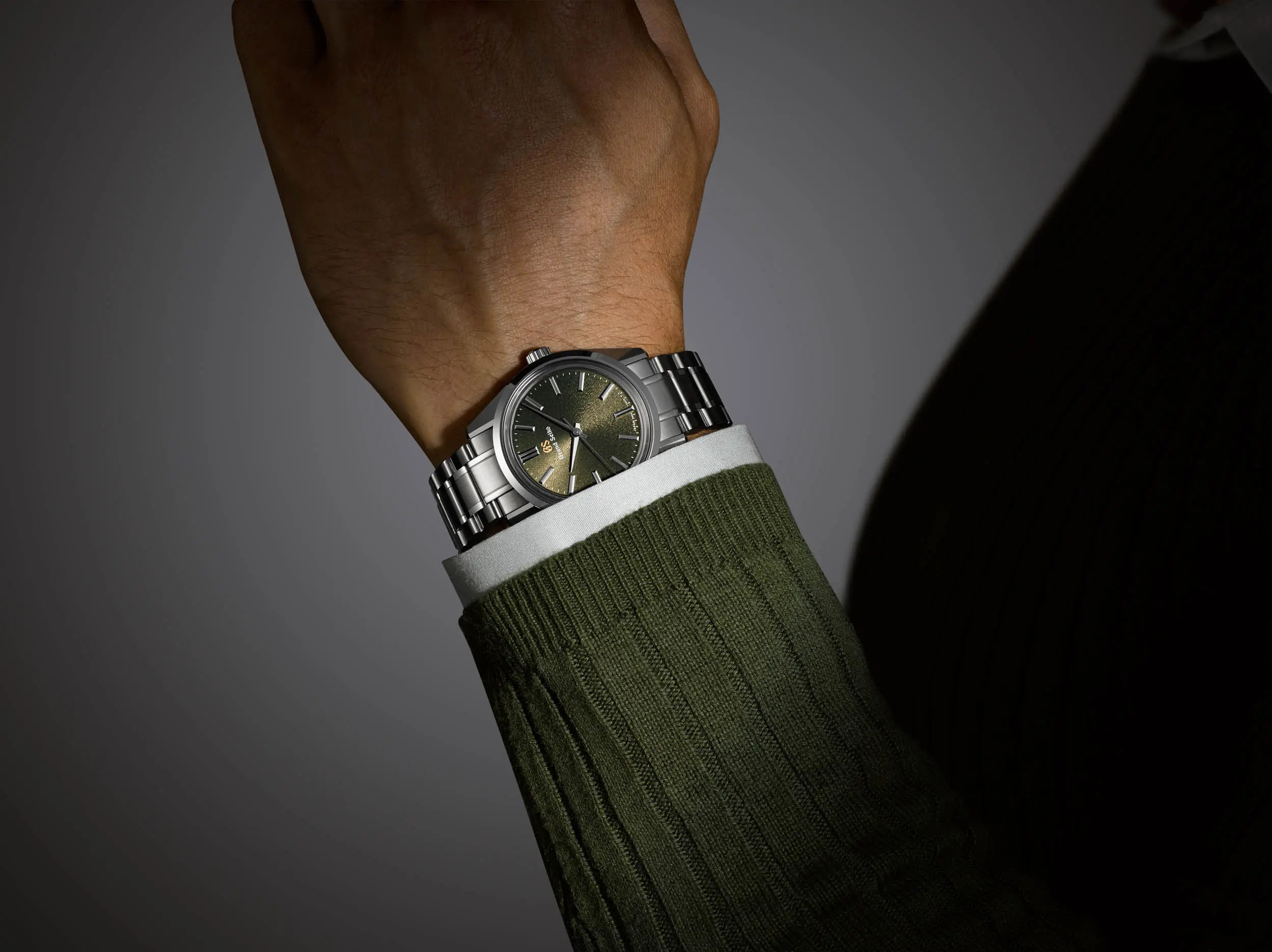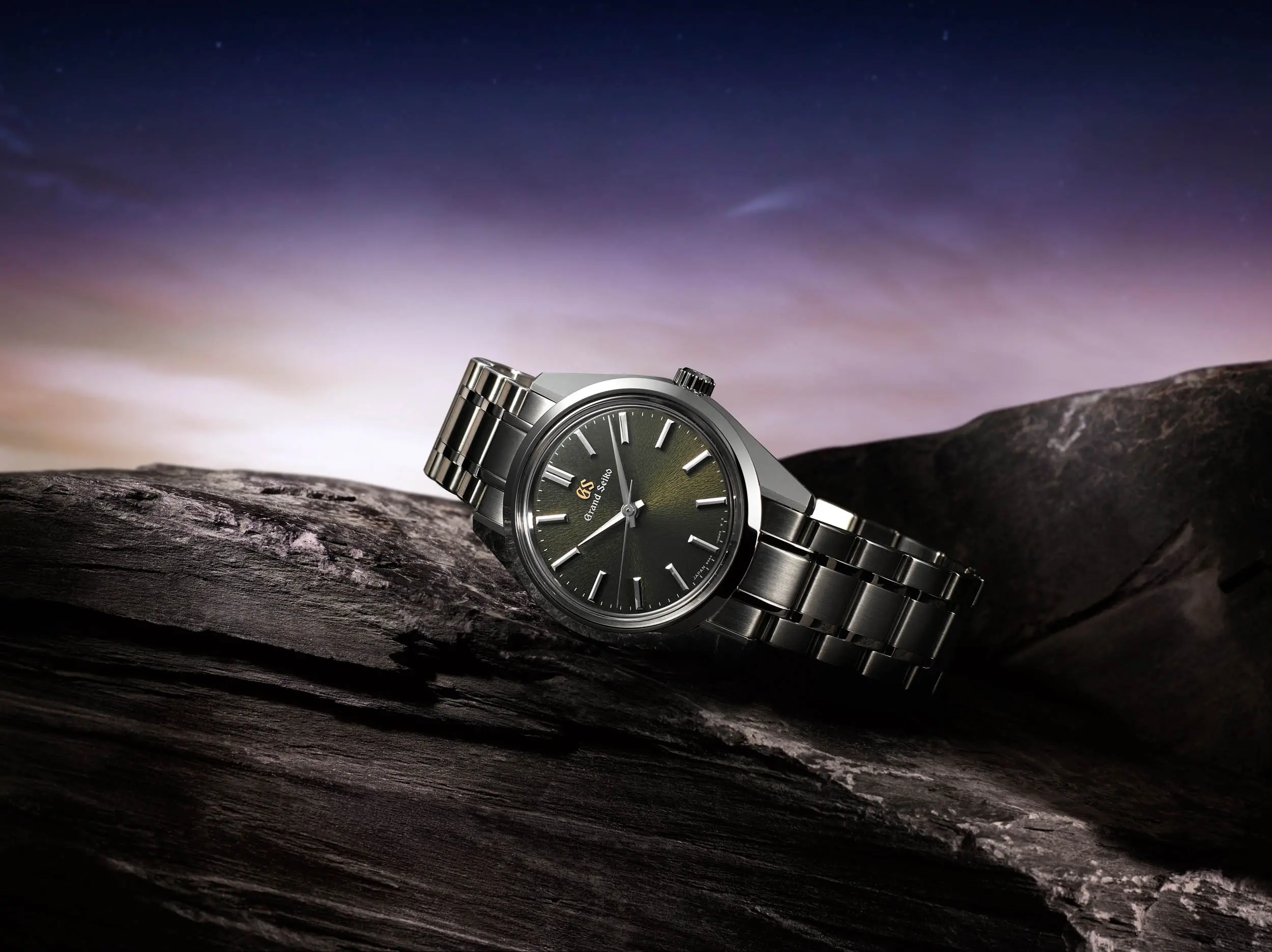 This limited-edition piece features a captivating green textured dial, showcasing the well-known “Mount Iwate” pattern. The dial’s fine ridges are inspired by the view of the mountain peak from the Shizukuishi Grand Seiko studio where this timepiece is crafted; evoking the craggy mountain vista. Its iridescent sheen makes it mesmerising when it catches the light – this particular watch is said to evoke the atmosphere of Mount Iwate, just before the dusk of the clear Autumn air.