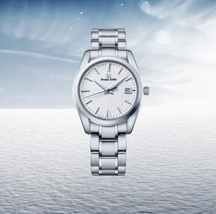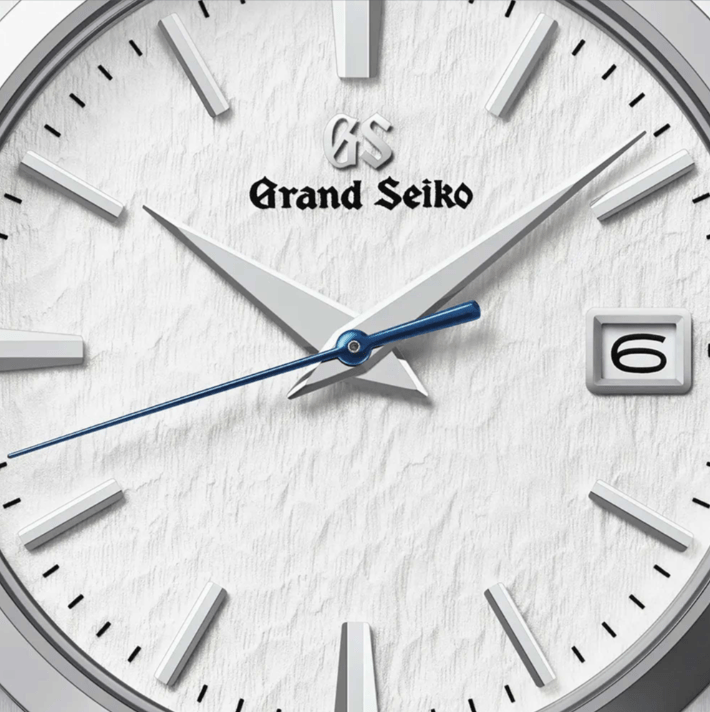 This Grand Seiko features the brand’s iconic ‘Snowflake’ dial – a distinct design inspired by the windswept snow of Japan’s Hotaka mountains surrounding the Grand Seiko studio. In the crisp, dry air, and when driven across the slopes by the wind, this snow has a special light and delicate quality that is captured in the subtly textured surface of the dial.