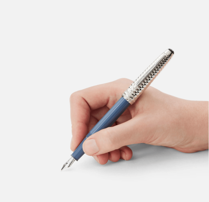 The Meisterstück Glacier Doué Fountain Pen with blue coloured precious resin is inspired by the mystical glaciers of the Mont Blanc mountain, standing for our dedication to high quality products and our attitude towards exploration and adventurous spirits.