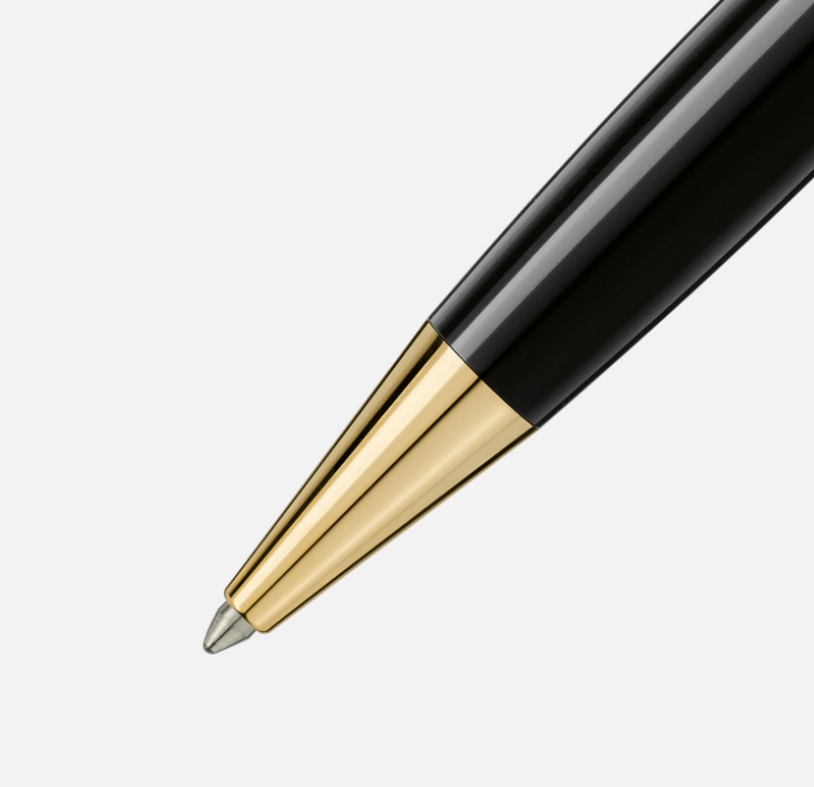 Montblanc Meisterstück Classique Gold-coated collection is a design that writes history. Introduced in 1924, a word meaning “Masterpiece,” the Meisterstück has become the symbol for high quality luxury writing. The cap and barrel are crafted in black precious resin featuring the iconic white Montblanc emblem inlaid in the cap top.