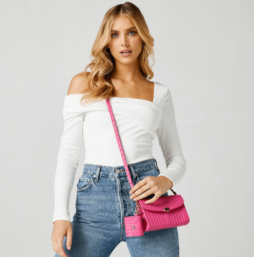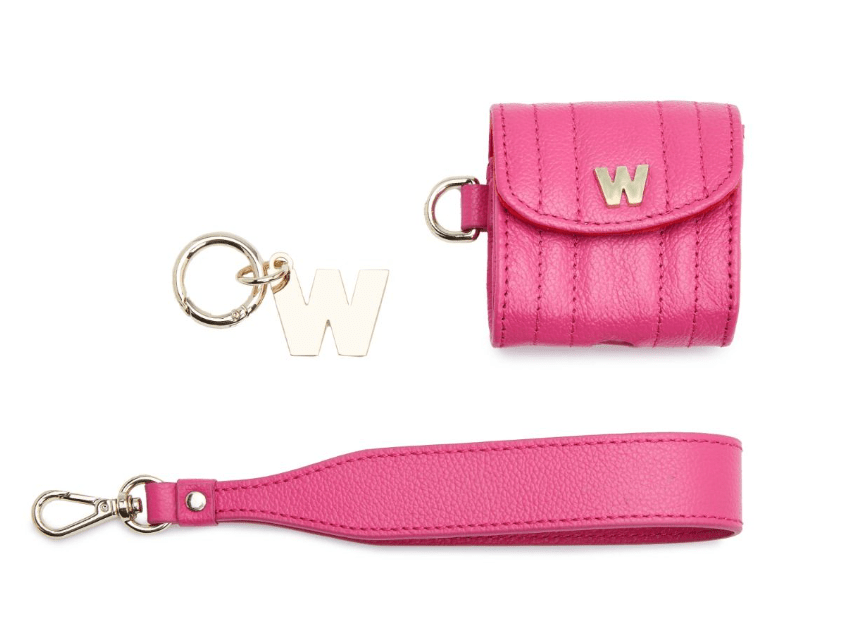 The Mimi comfortably fits both Airpod and Airpod Pro cases. The case can be used alone or attached to any other piece in the Mimi collection.