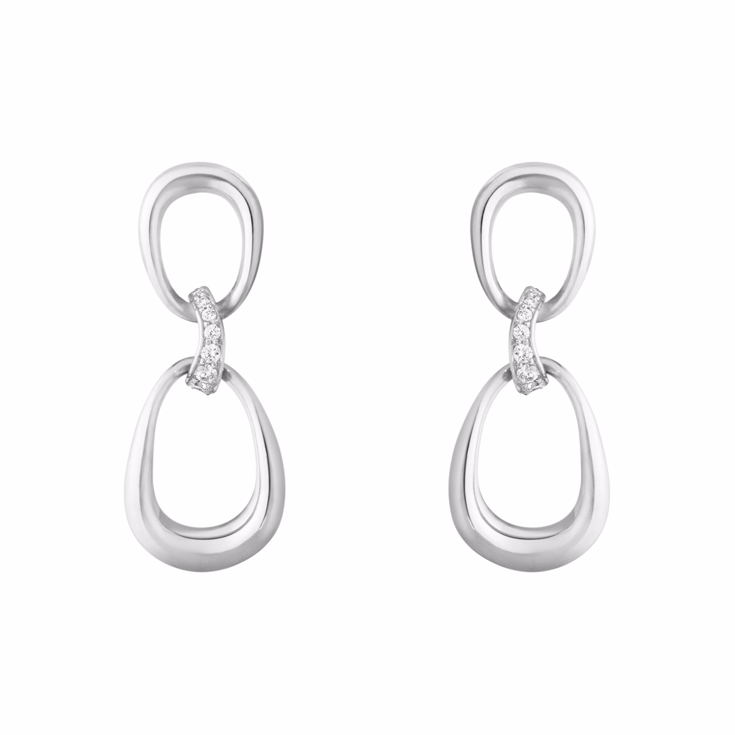 Part of Jacqueline Rabun’s Offspring collection, these silver earrings are made up of two organically-shaped loops connected by a delicate bridge of diamonds. As with the rest of the collection, their form is imbued with a deep sense of symbolism; interlocking elements are used to represent emotional links that tie together personal relationships.