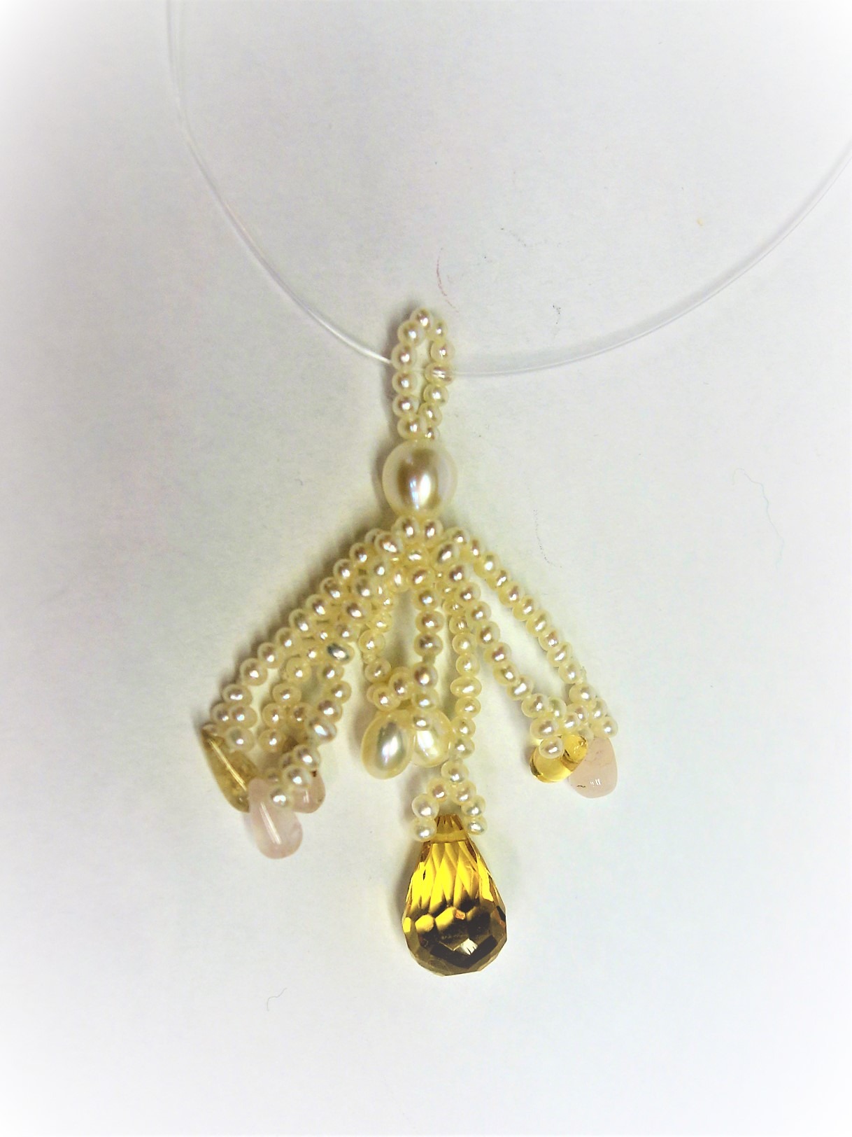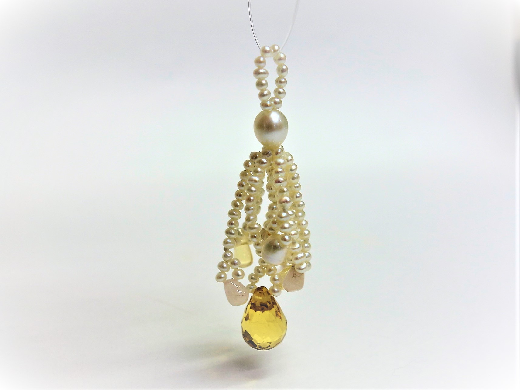 Pearl, Citrine And Rose Quartz Tassel Charm For Necklets