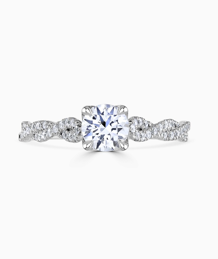 Solitaire engagement ring featuring our signature Bloom setting and diamonds set in a rope twist through the shoulders. Centre diamond 0.50ct, total 0.67ct