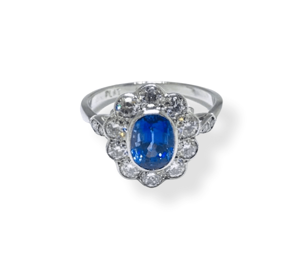 Pre-Owned Platinum Sapphire & Diamond Cluster Ring