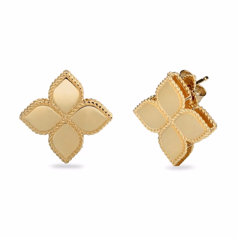 The 18ct gold is the absolute protagonist of these flower earrings by Roberto Coin, featuring the uniqueness of an handmade jewel. Princess Flower earrings in 18ct yellow gold. For pierced ears.