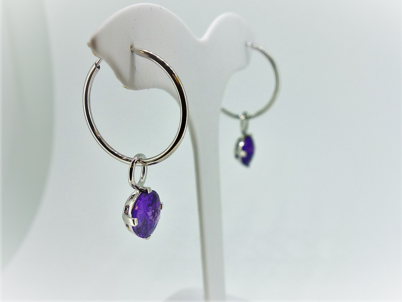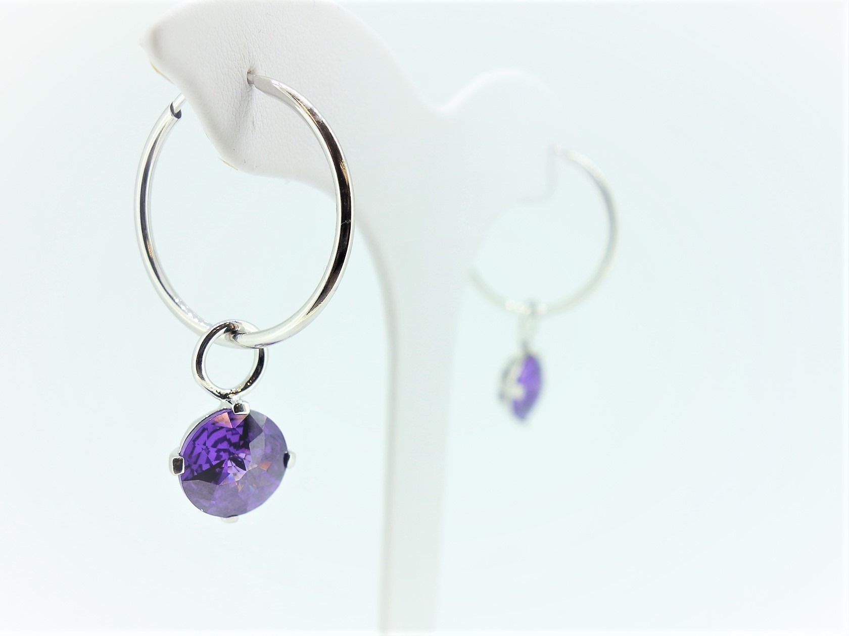 Silver And Purple Zirconia Hoop Earring Charms