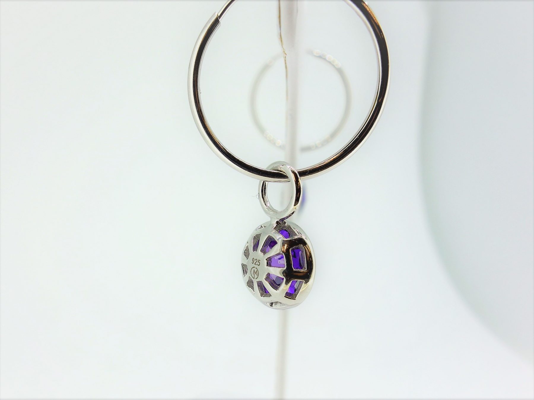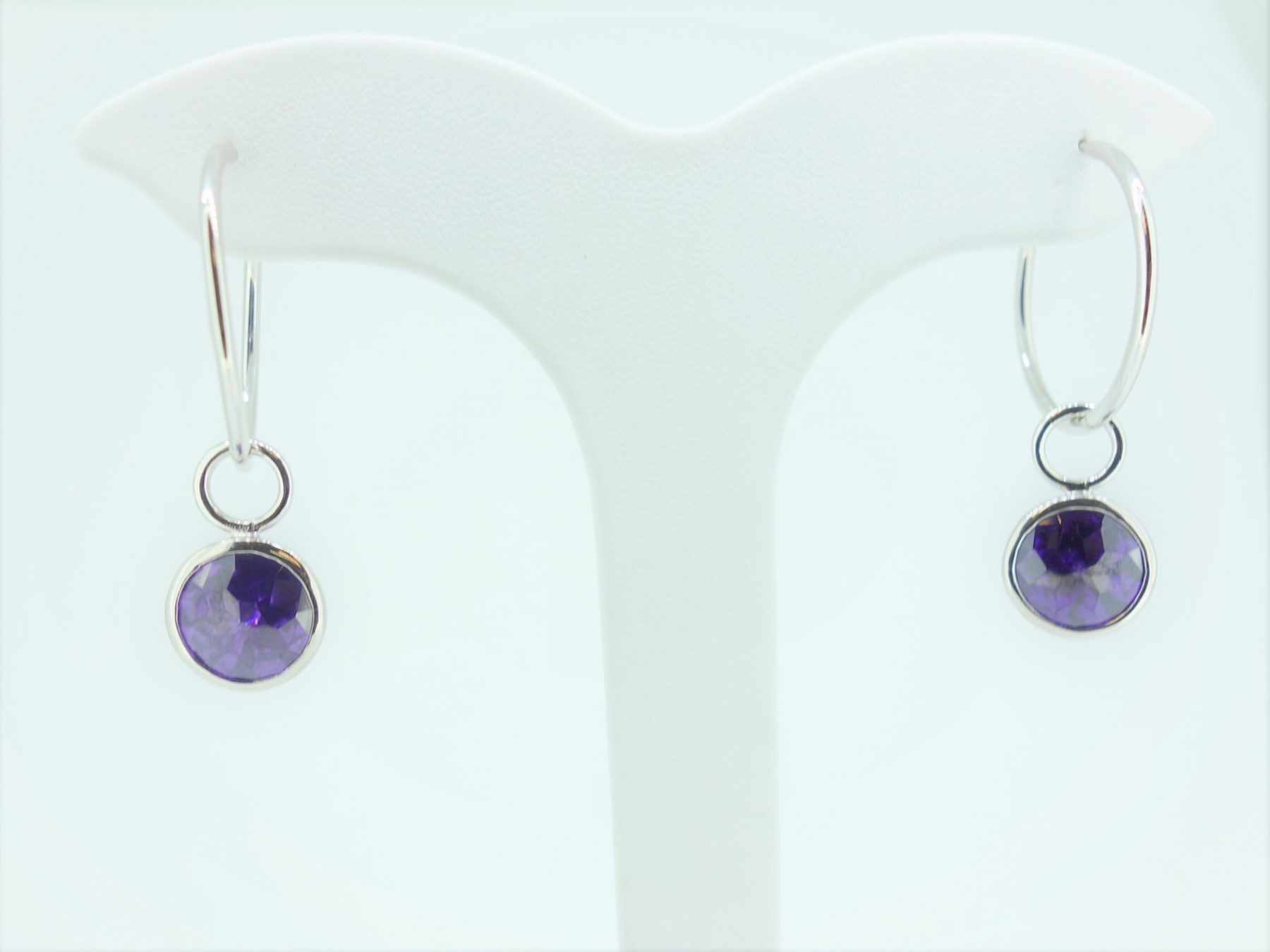 Silver And Purple Zirconia Bezel Set Hoop Earring Charms