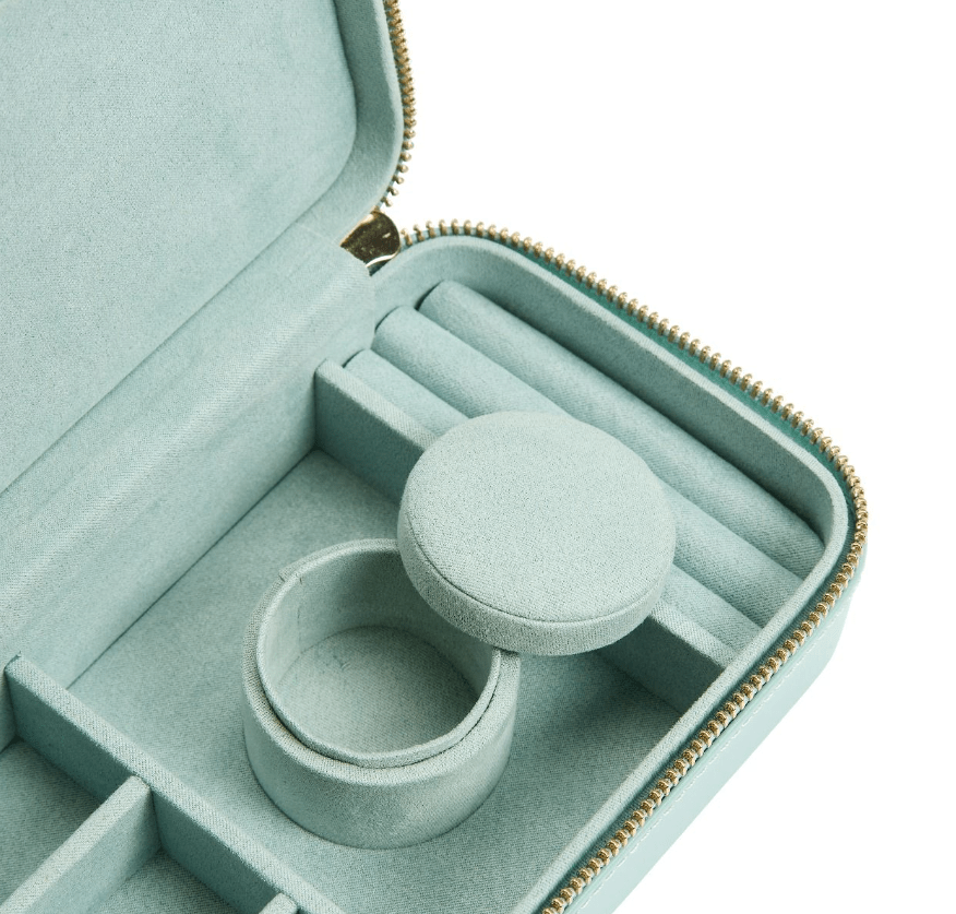 Where classic meets contemporary, function meets fashion, Sophia’s Travel Zip Case is designed to protect jewellery on-the-go. Available in sweet neutrals and rich colorways inspired by the natural world, Sophia pops on your dresser or in your travel bag. Wrapped in leather and lined with our patented LusterLoc™, this case is essential to elegantly protect and prevent jewellery from tarnishing for up to 35 years.