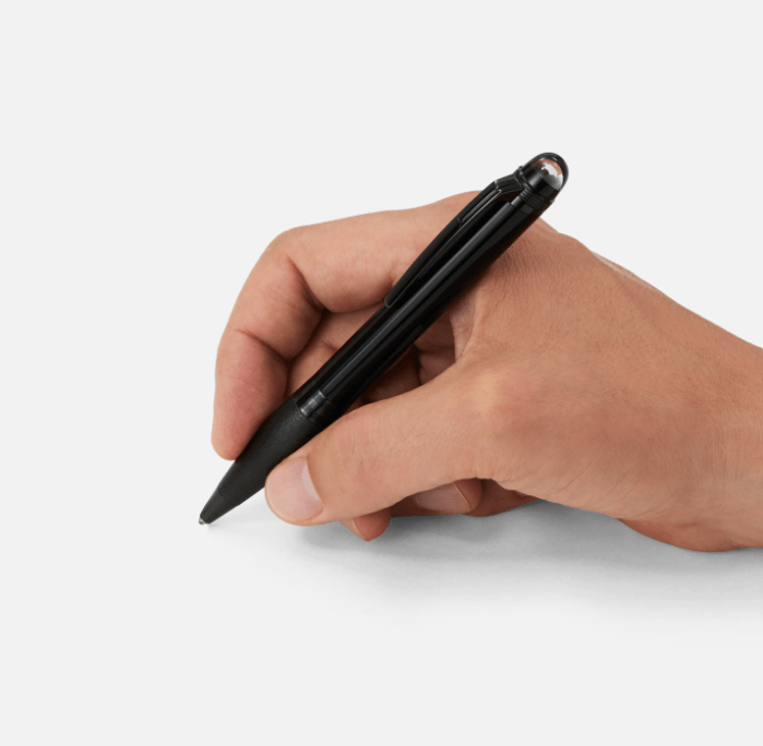 The StarWalker collection is about walking amidst the stars. It’s about exploring the cosmos and foreign galaxies, about being part of one of the most mysterious and powerful of humankind’s adventures: space exploration. The StarWalker BlackCosmos collection depicts the depth of space from the shiny black precious resin and the black PVD-coated fittings, to the needled metal cap which conveys a distinct material feeling.