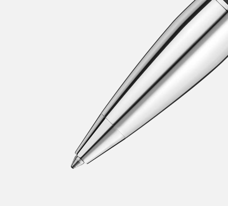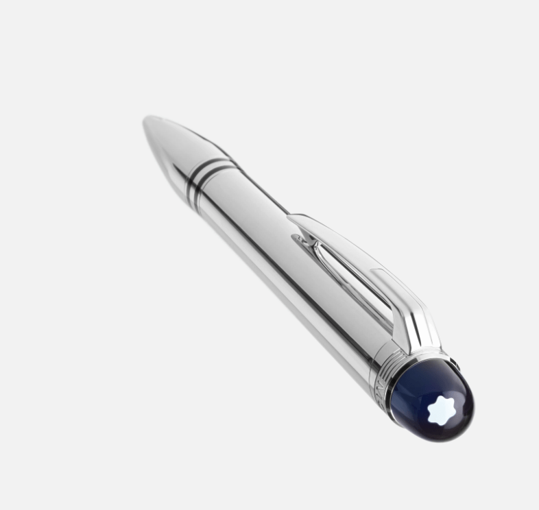 The StarWalker emblem technology features a blue translucent dome beneath the Montblanc emblem, reminiscent of the Earth emerging above the lunar horizon. The StarWalker Metal comes with a platinum-coated barrel and fittings.