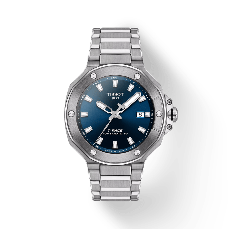 Tissot has drawn inspiration from its partnership with motorcycle racing to create a watch that reflects the dynamism of motorcycles and the emotion of the sport. The see-through case back is a window to heart of this timepiece: equipped with the Powermatic 80 movement featuring a Nivachron balance spring, the T-Race Automatic redefines what is possible, on and off the road. The bezel and crown protector are inspired by the brake disc and its calliper. Embrace a riding experience that seamlessly merges motorsports passion and innovation with this beautifully crafted watch, featuring a deep blue dial and a stainless steel bracelet.