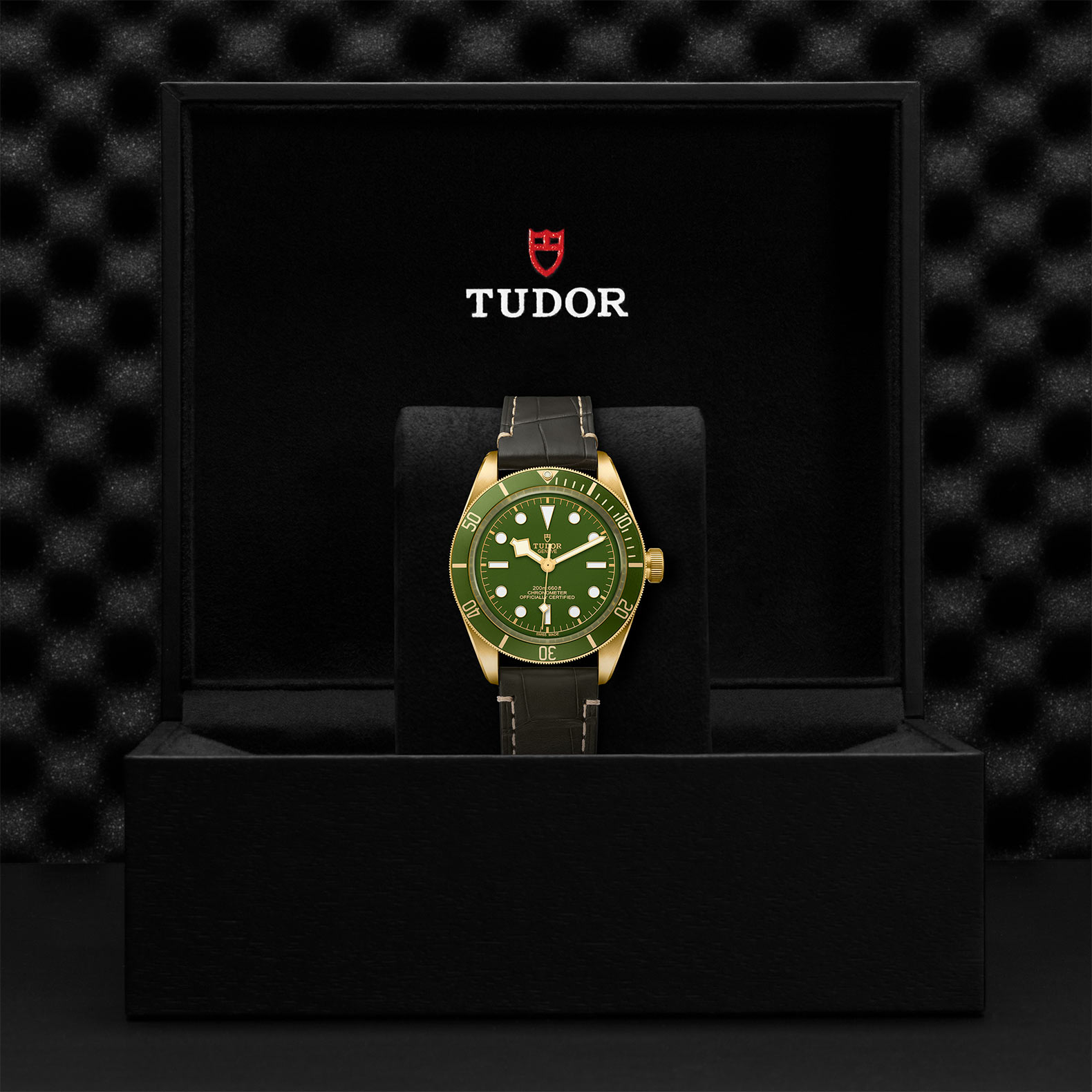 - Winding Crown – 18ct yellow gold screw-down winding crown, with the TUDOR rose in relief with circular satin-brushed 18ct yellow gold winding crown tube