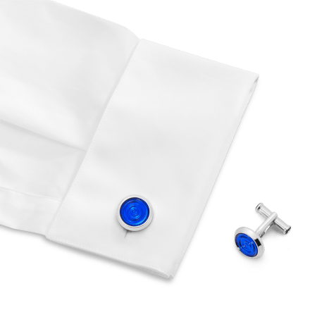 The Urban Spirit cuff links celebrate understated style with a modern twist. The cuff links in stainless steel and blue resin, inspired by fallen raindrops, create a unique jewel with endless possibilities to highlight one’s style and personality.