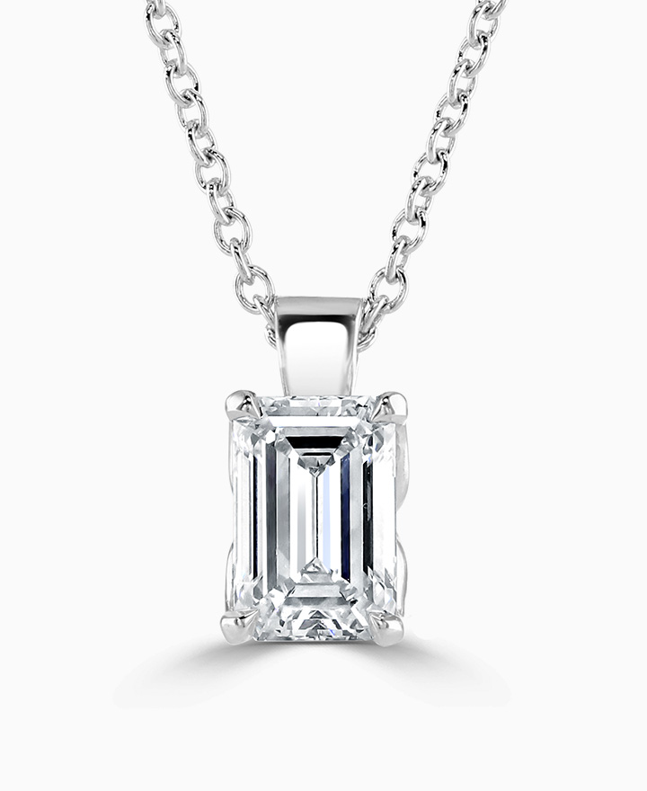 Emerald Cut Laboratory Grown Diamond set in Platinum with 4 claw setting