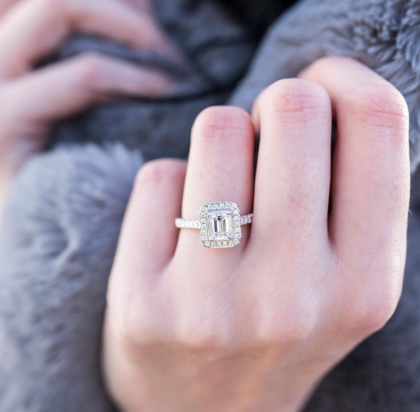 18ct White Gold Diamond Halo and Shouldered Ring