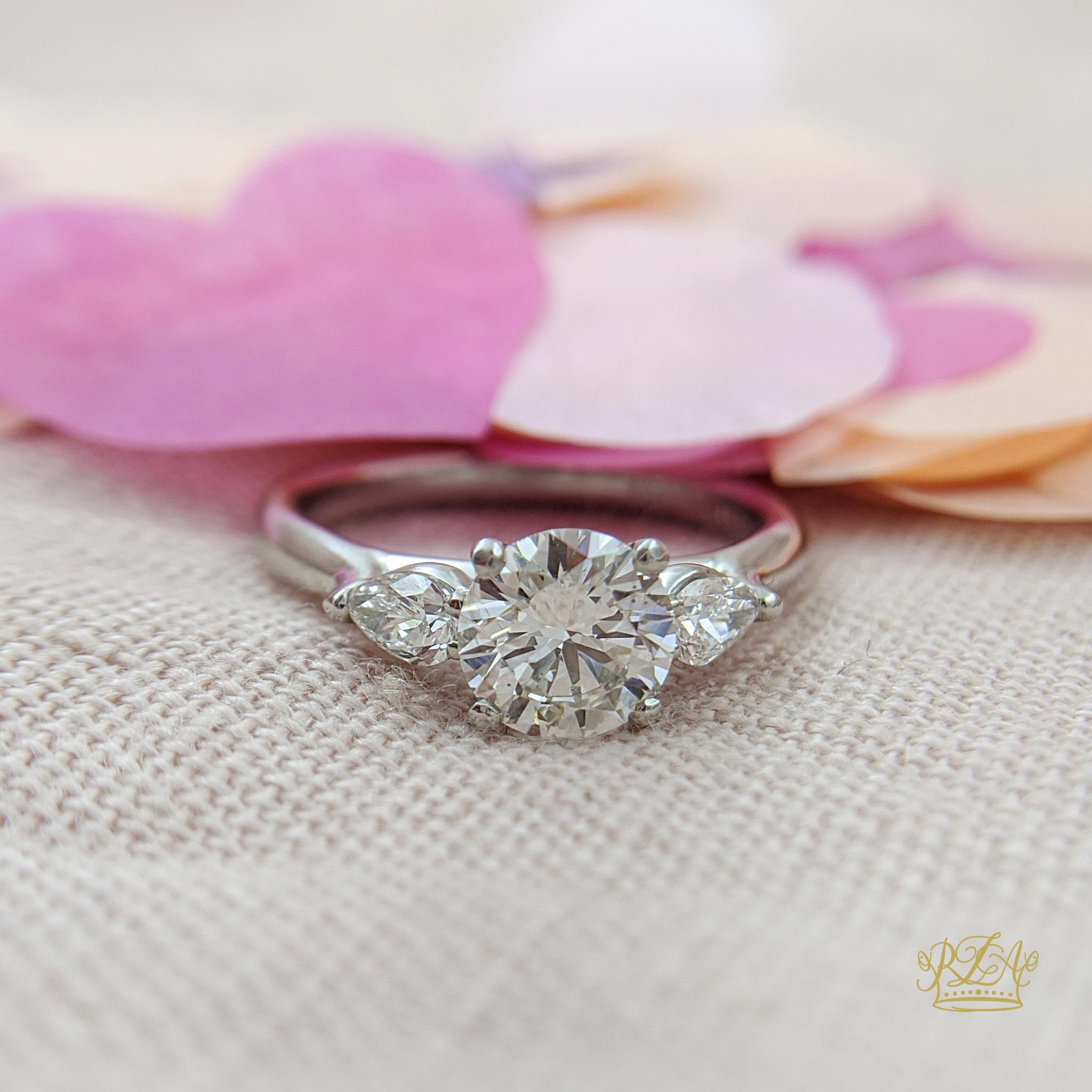 18ct White Gold Emerald Cut Diamond Trilogy Ring